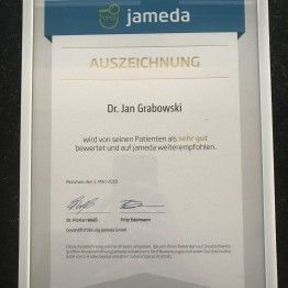 Wir freuen uns sehr über die Auszeichnung des Online-Bewertungsportals „Jameda“ und über die vielen positiven Bewertungen unserer Patienten. Vielen Dank für den großen Vertrauensvorschuss den Ihr uns jeden Tag entgegenbringt. Wir sind stets bemüht und setzen alles daran moderne Zahnmedizin für den Patienten so angenehm wie möglich zu gestalten.